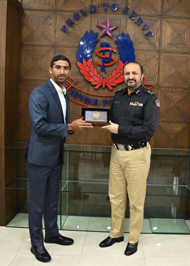 آئی جی سندھ جاوید عالم اوڈھو سے عالمی شہرت یافتہ معروف کرکٹر و فاسٹ باؤلر شاہنواز ڈہانی کی ملاقات۔ سینٹرل